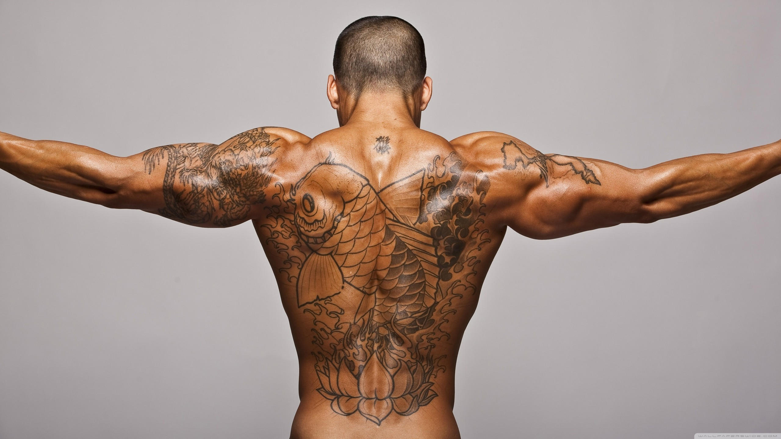 Bodybuilding 2560x1440 motivation training back tatoo