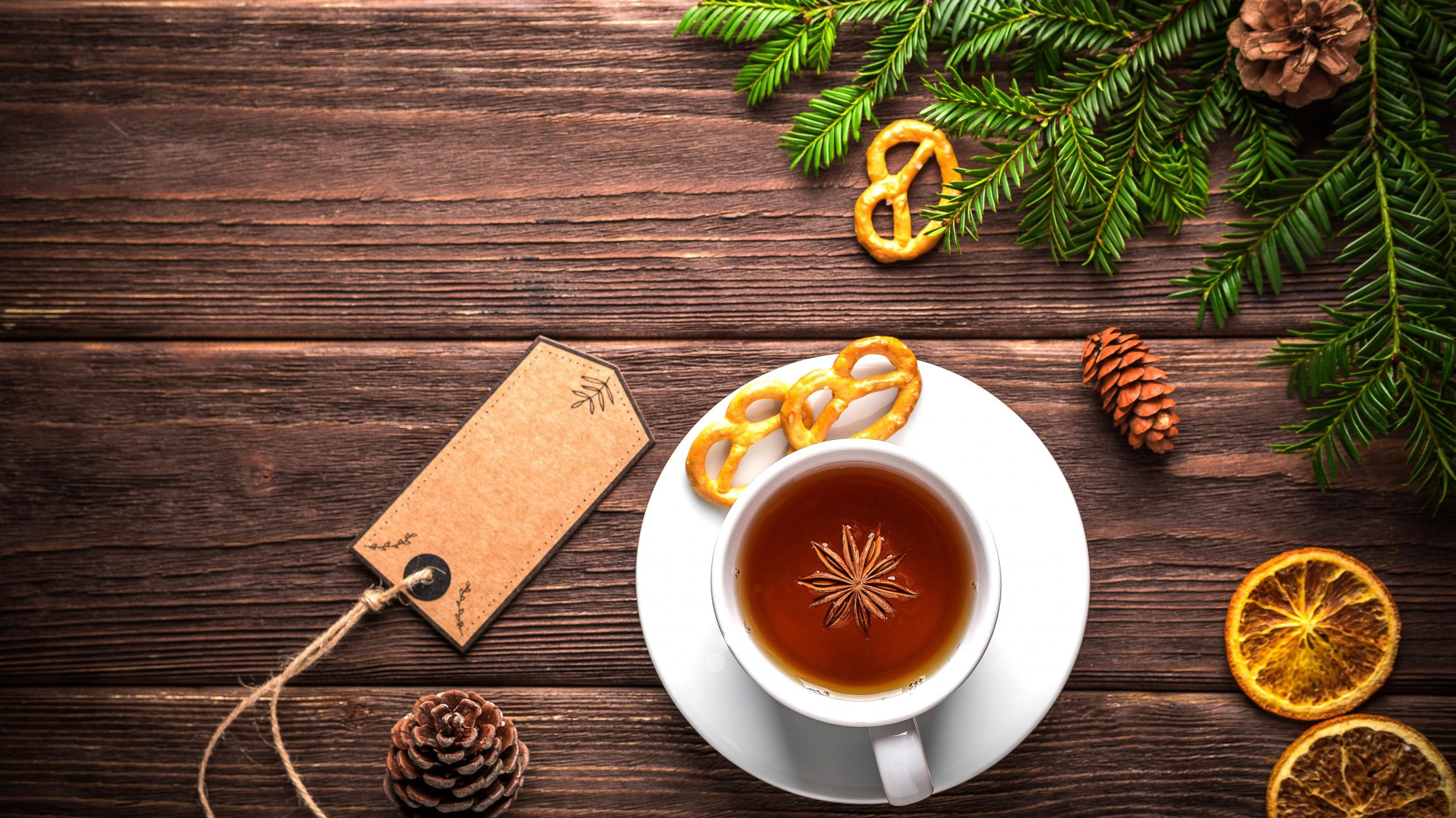 Christmas 2560x1440 new year table fir tree tea 5k