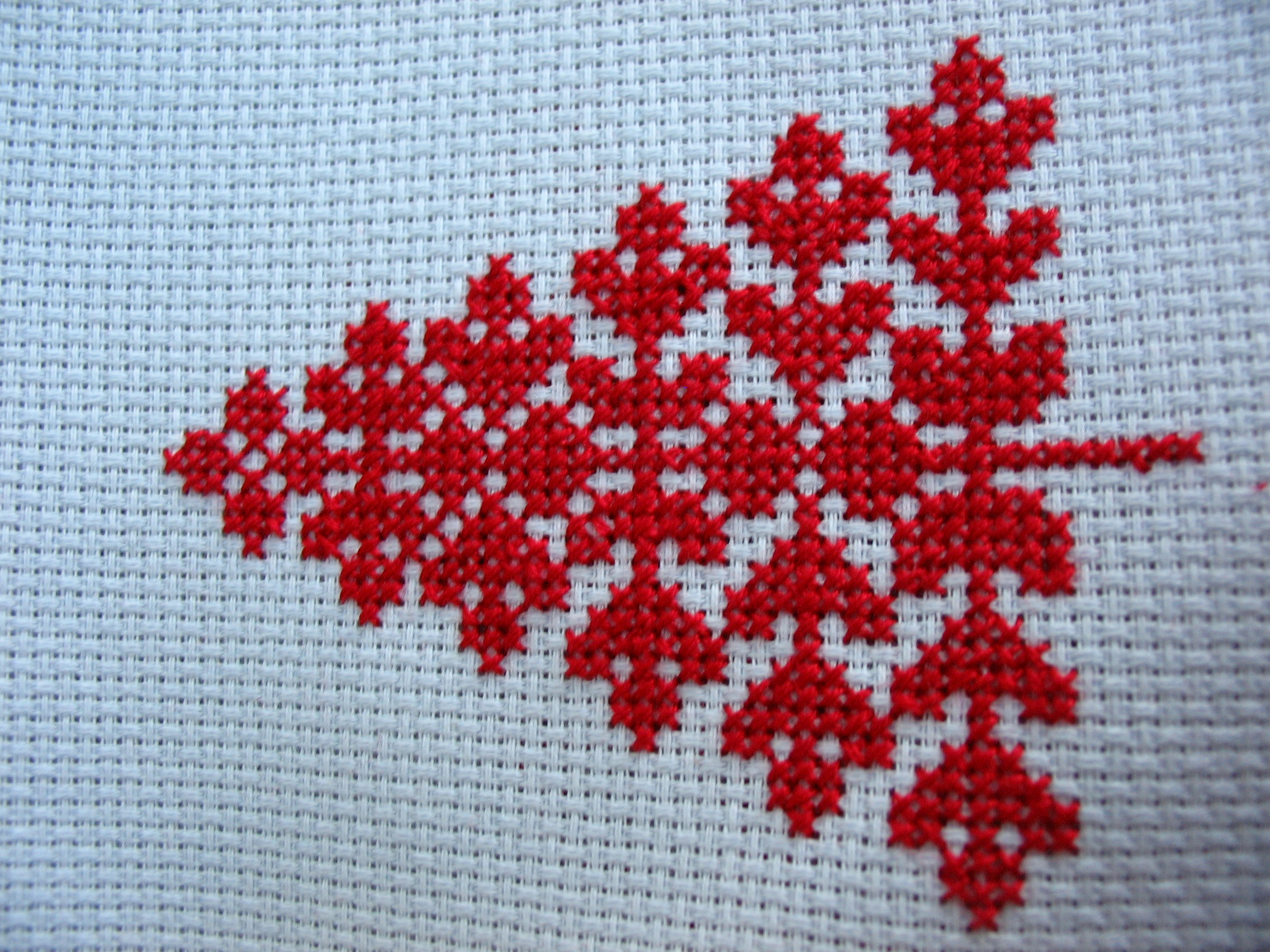 En esta imagen podemos observar una tela blanca de cuadros y encima un hermoso arbolito navideño rojo que fue bordado, decárgala gratis