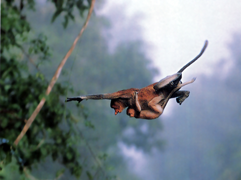 Fondo de pantalla monos pasando de rama