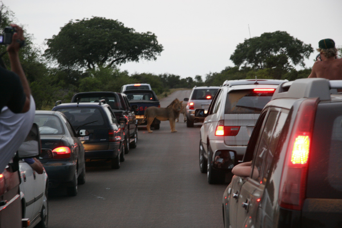 leon en la carretera
