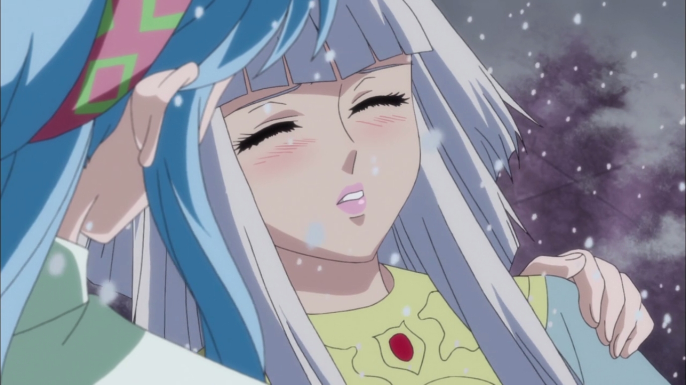 Imagen de Los Caballeros del Zodiaco Alma de Oro podemos ver a Hilda la Representante de Odin, ella enferma y elige a a Lyfia para que ocupa al parecer su lugar en el primer capitulo.