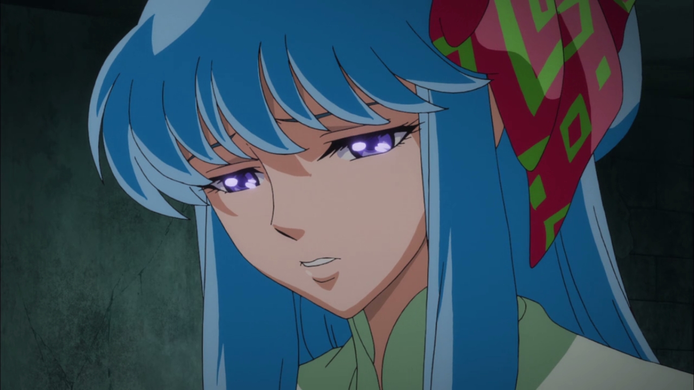 Esta imagen es de Los Caballeros del Zodiaco Alma de Oro podemos ver a Lyfia de Asgar una chica que aparece en el primer capitulo y que al parecer es alguien importante
