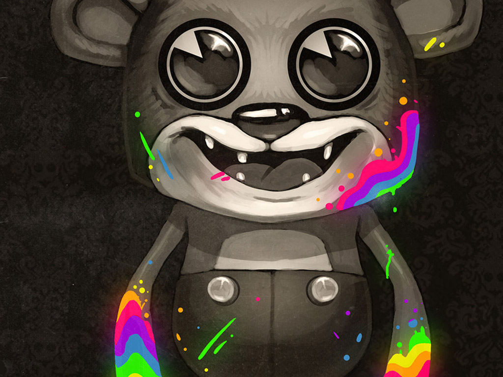 Un osito muy psicodelico perfecto para fondos de pantalla de discotecas y sitios alternativos.